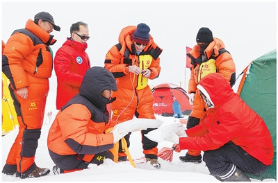 青藏高原海拔5500米以上的山口风雪肆虐,这条冰雪之路上时常出现科考队员的身影。十步一小歇,百步一大歇……科考队员爬冰卧雪,在茫茫雪原上地毯式扫描,探寻冰层下封锁着的有关气候变化的蛛丝马迹。